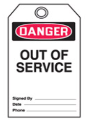 SELF-LAMINATING TAGS DANGER OUT OF..PK25