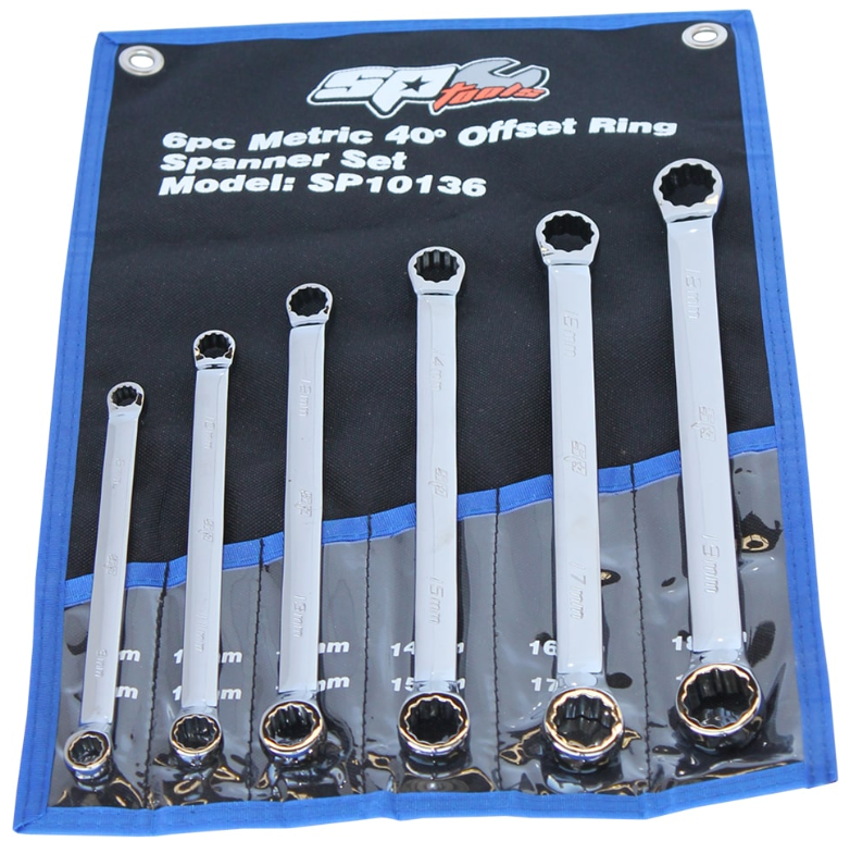 DOUBLE RING SPANNER SET - 40° OFFSET - METRIC - 6PC