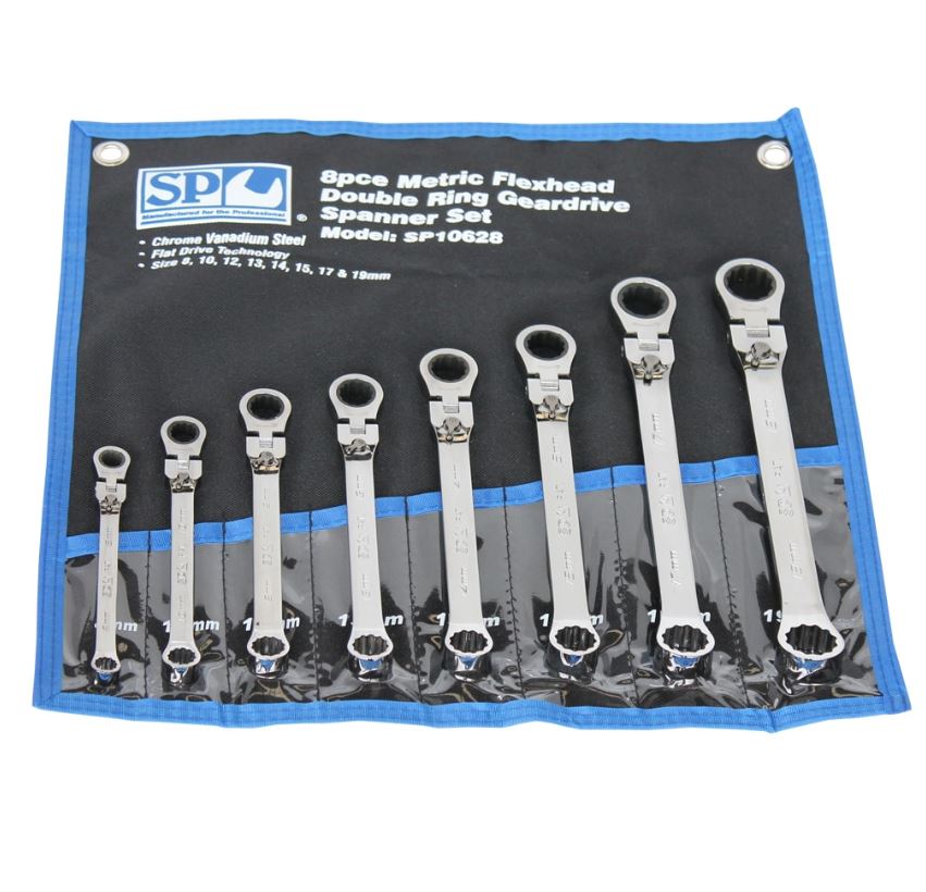 SET SPANNER DOUBLE RING GEARDRIVE LOCKING FLEX HEAD 8PC METRIC SP TOOLS
