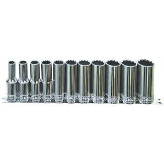 SOCKET RAIL DEEP 1/2" DR 12PT 11PC SAE - 3/8, 7/16, 1/2, 9/16, 5/8, 11/16, 3/4, 13/16, 7/8, 15/16 & 1”