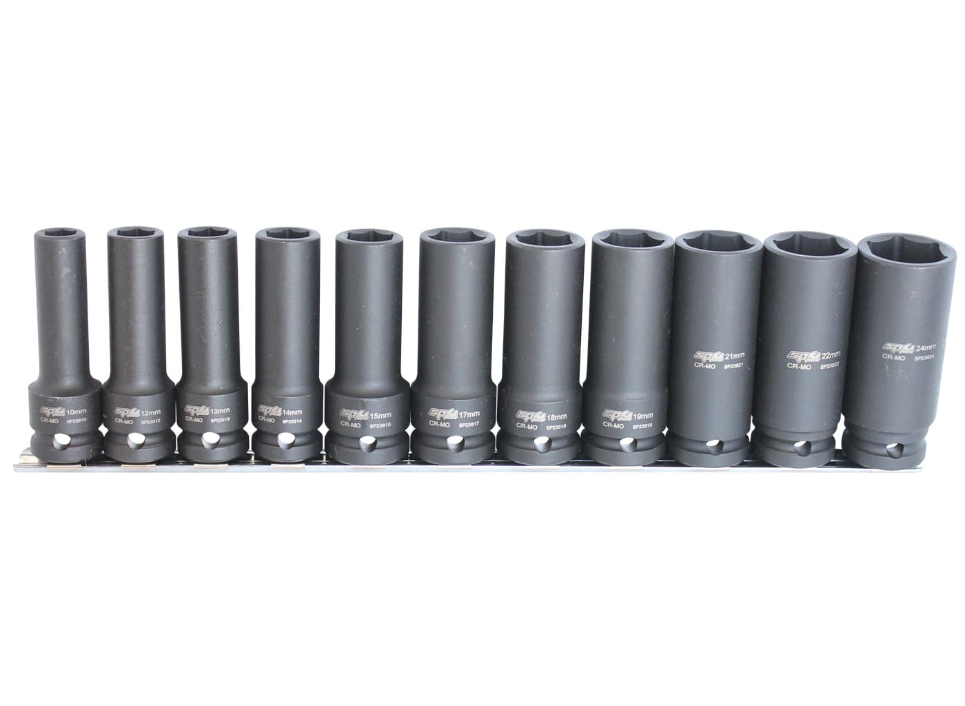 SOCKET RAIL DEEP IMPACT 1/2" DR 6PT 11PC METRIC - 10, 12, 13, 14, 15, 17, 18, 19, 21, 22 & 24mm