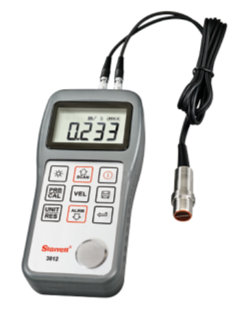 Ultrasonic Thickness Gage is a menu driven, multifunctional tester with basic measurement capabilities. This gage is designed to measure the thickness of metallic and non-metallic materials such as aluminum, titanium, plastics, ceramics, glass and any other good ultrasonic wave conductor, as long as it has parallel top and bottom surfaces. The 3812 will accurately display readings in either inch or millimeter after a simple calibration to a known thickness or sound velocity.