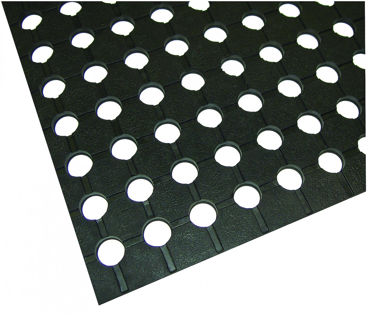 Utility Matting is a heavy duty Mat which is used in medium use areas as a soft, non-slip safety Mat. The soft natural rubber formula provides a comfortable and ultra grippy surface. The drainage holes and channels in the Mat surface allow liquids to quickly drain off the, leaving the top dry. The leather grain pattern embossed into Mat surface provides a non-slip surface. Suction caps on the base assist in keeping the Mat adhered to the floor, preventing it from slipping around while in use.