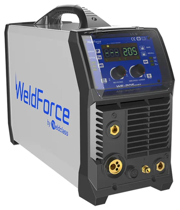 The Force 205MST* is not your standard portable multi-function MIG. Boasting 200A @ 30% output, this unit has the grunt and an impressive range of features to get the job done and save time and money. Work in manual mode, or synergic (select the material and thickness, and the machine takes care of the settings). PFC technology means the 205MST is incredibly power efficient, giving it more duty cycle and making it an excellent choice for use on long extension leads (up to 100m) and/or use on generators. Stick/MMA & lift-TIG capability, job save & recall, geared drive system, fan-on-demand to reduce dust intake, spool gun ready, advanced Stick and TIG functions... and too many other features to list here! Comes with 4m heavy-duty Euro-fit MIG torch, 2-stage gas-saving regulator, 0.8/0.9mm drive rollers for gas, gasless & aluminium wire, 4m earth and stick leads, 15A plug fitted, cable strap. Maximum recommended MIG welding capacity of 10mm (mild steel).